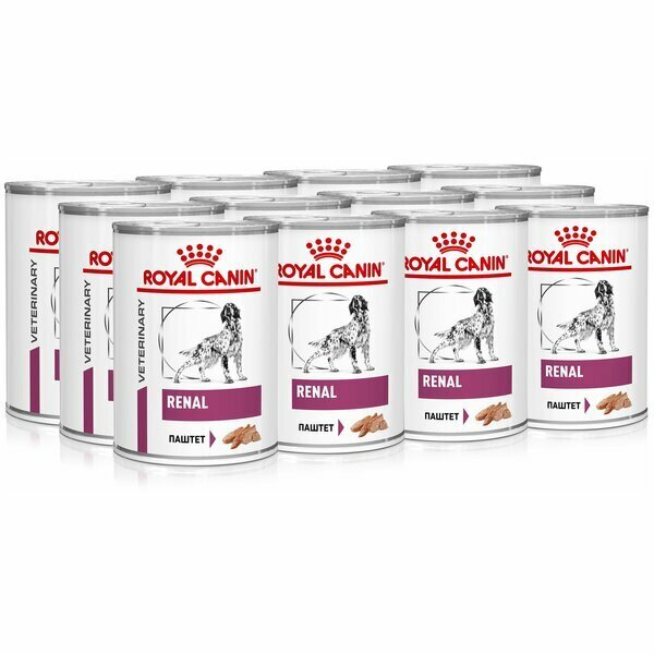 Консервы Royal Canin Renal для взрослых собак при почечной недостаточности, паштет 12х0,410кг