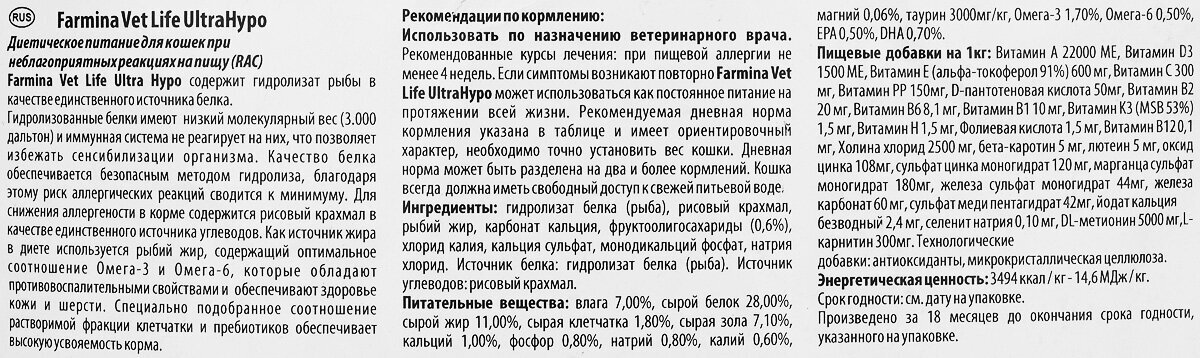 СохранитьКорм Farmina Vet Life UltraHypo для кошек при пищевой аллергии и непереносимости с ярко выраженной гиперчувсвтельностью, 10 кг интересное: