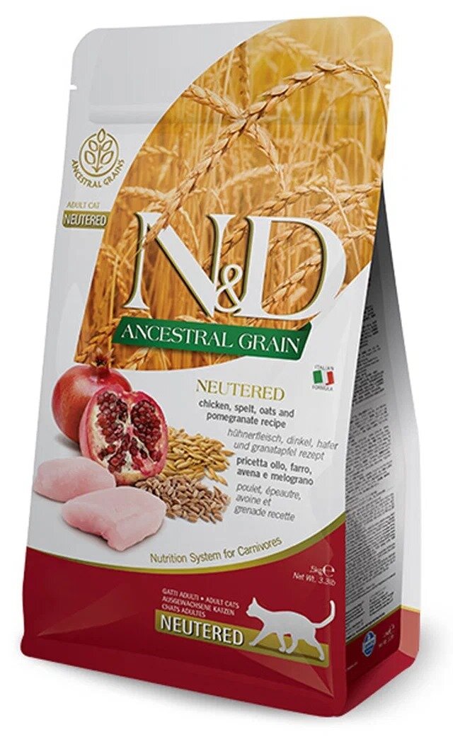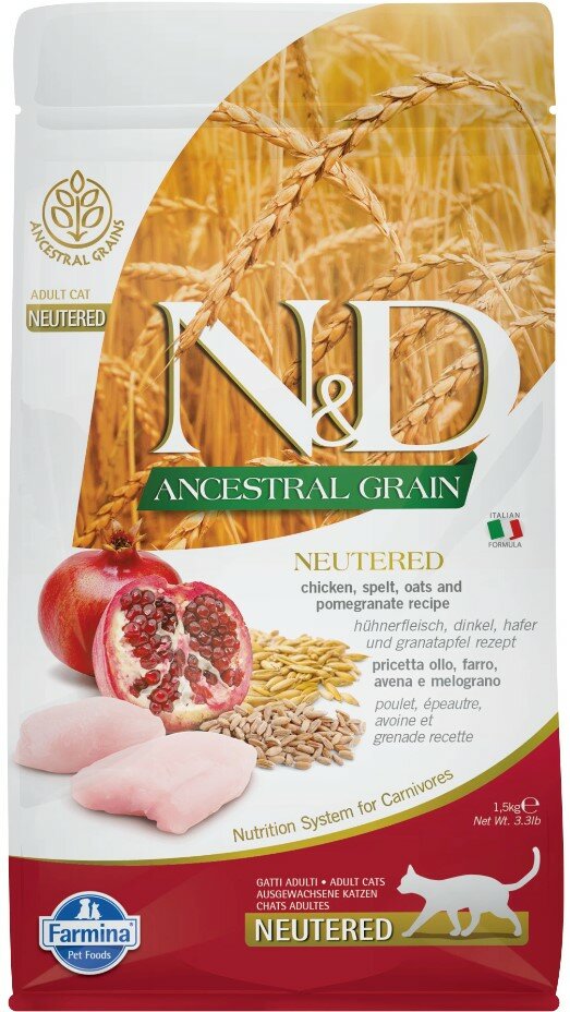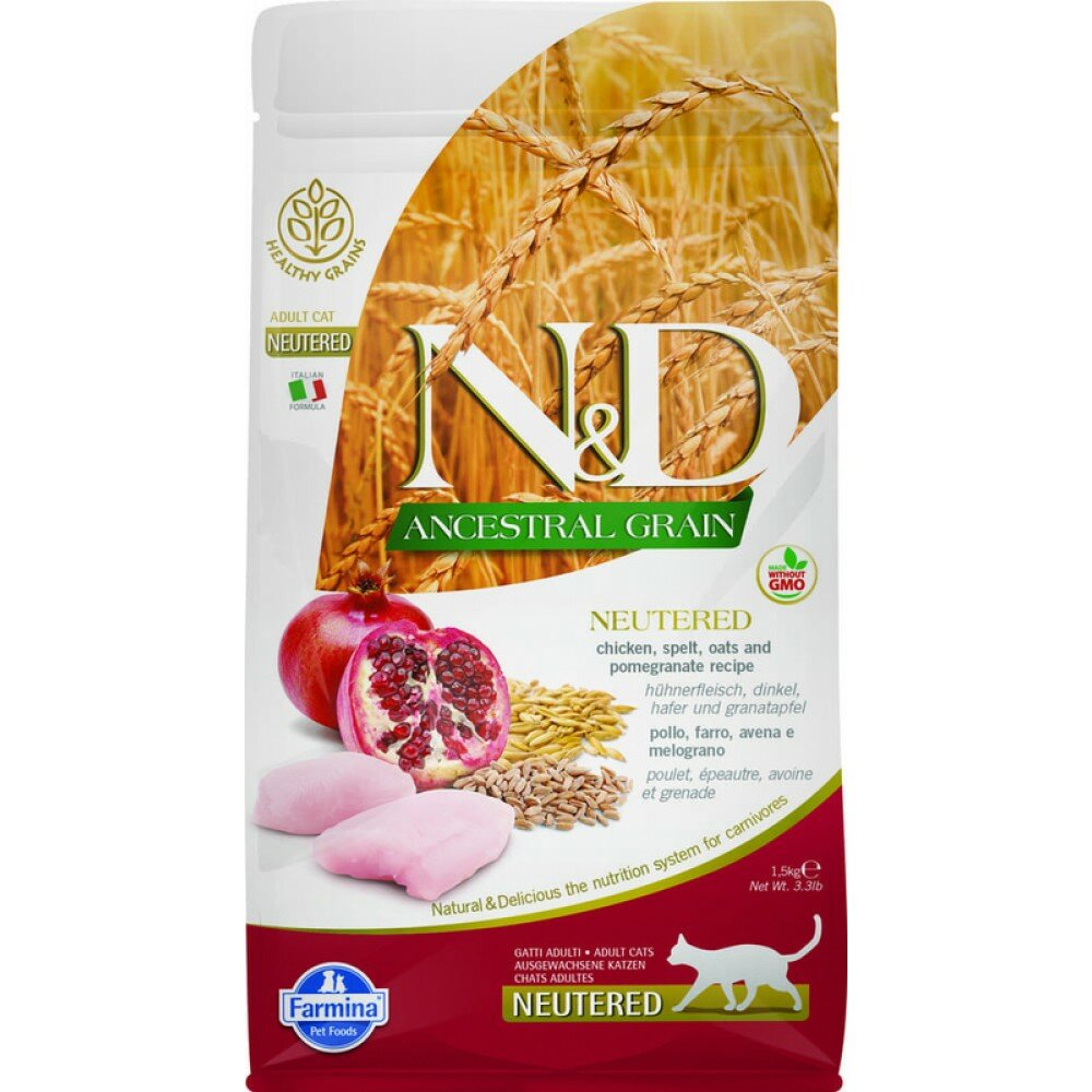 FARMINA CAT N&D ANCESTRAL GRAIN NEUTERED CHICKEN & POMEGRANATE низкозерновой для взрослых кастрированных котов и стерилизованных кошек с курицей и гранатом (1,5 кг)