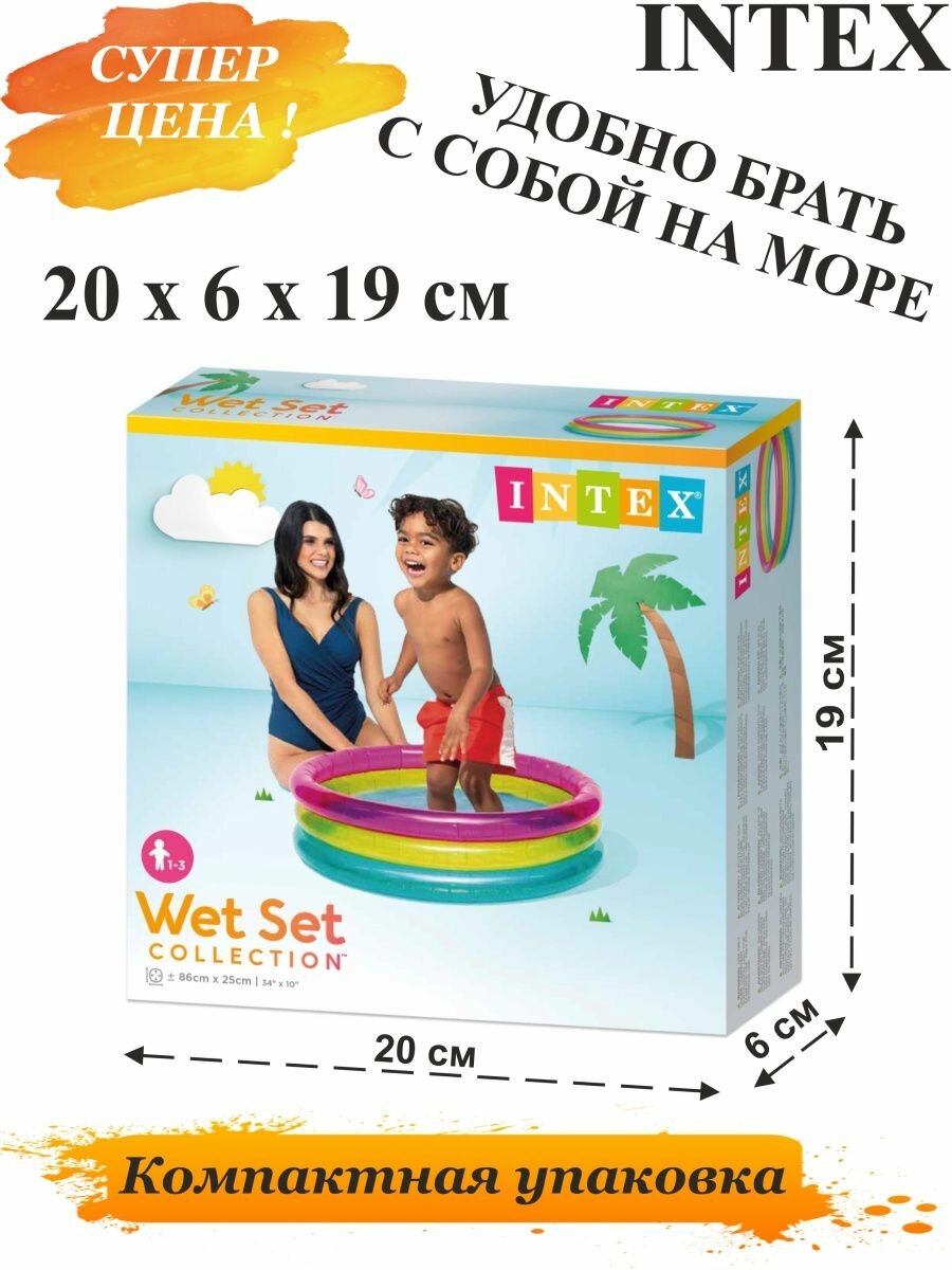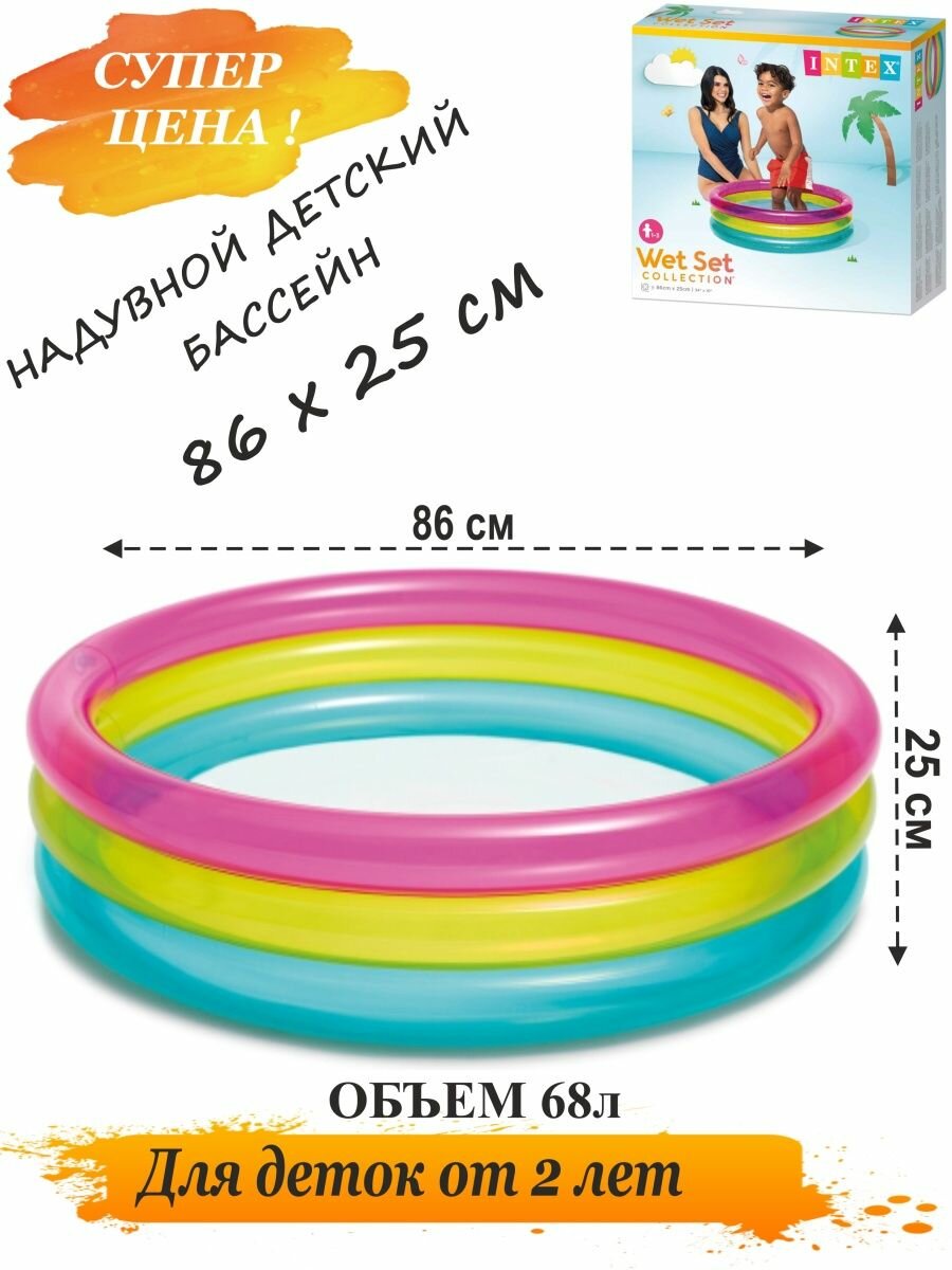 Купить Бассейн надувной детский INTEX Rainbow Baby Pool (Радужный) 1-3 года 86смx25см