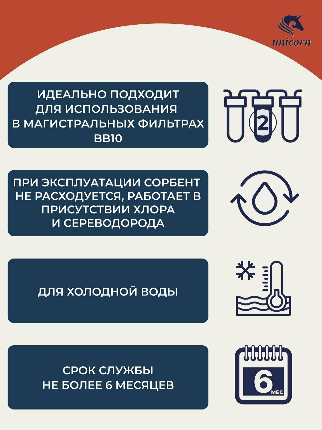 Картридж для удаления железа, 10ВВ, Unicorn (Картридж из спеченного в блок активированного угля) (FCFE10ВВ)