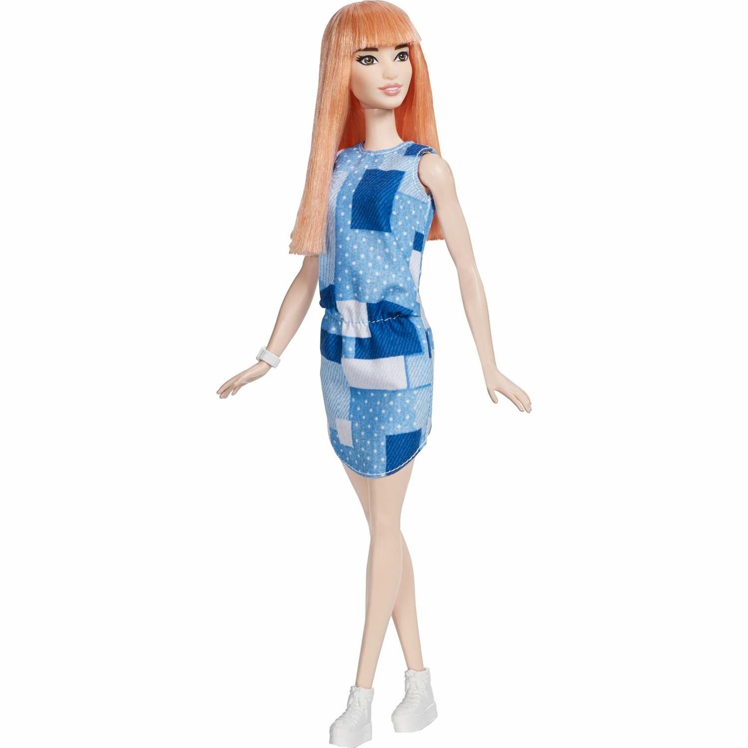 Купить Кукла Barbie Игра с модой, 29 см, FBR37 рыжая в платье с джинсовыми заплатками