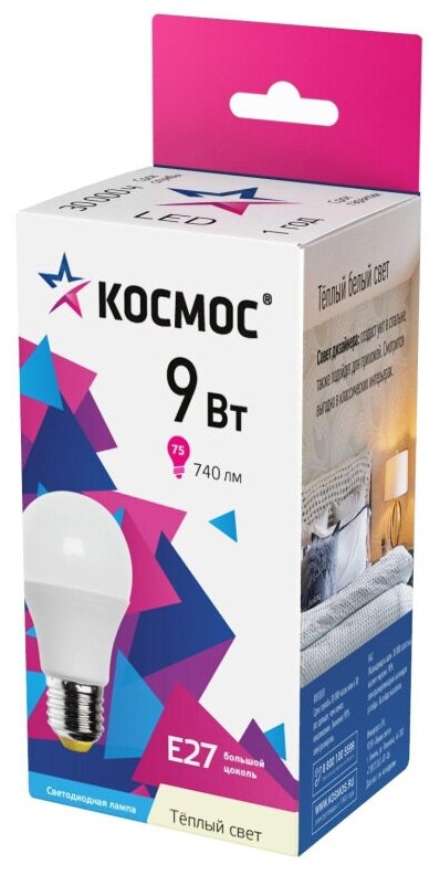 Купить Лампа светодиодная LED 9Вт 220В Е27 D55х98 3000К теплый 720 лм A55КОСМОС LkecLED9wA55E2730 Космос