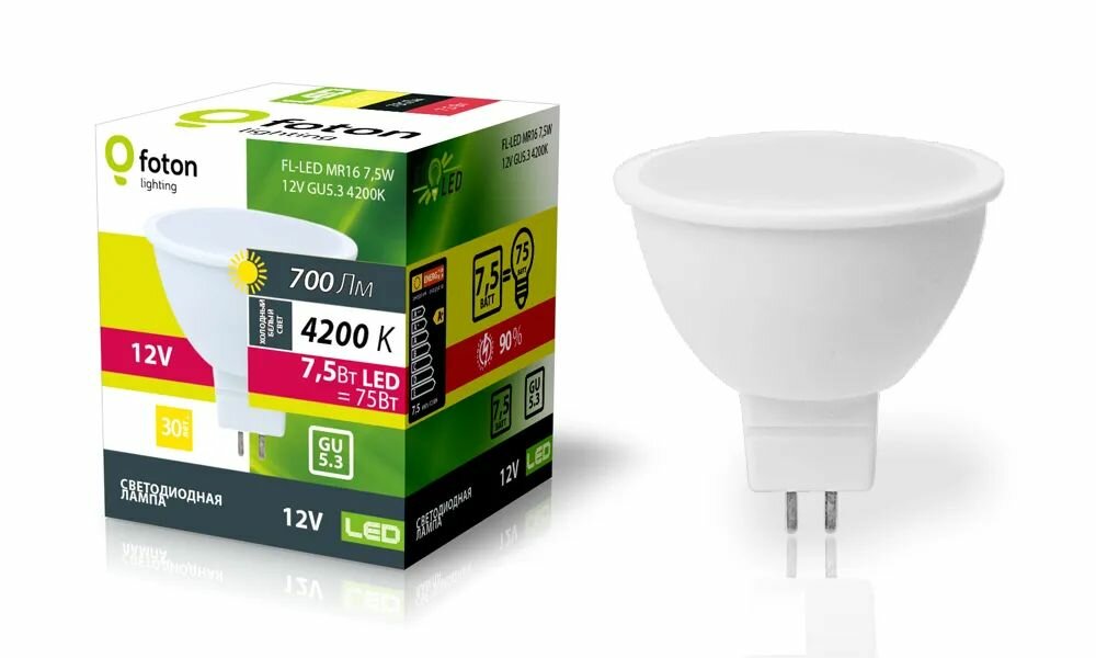 Ниже Вы можете прочитать отзывы на Светодиодная лампа Foton Lighting FL-LED MR16 7.5W 12V GU5.3 4200K 56xd50 700Лм, ознакомится с подробными характеристиками, посмотреть интересные обзоры и фотографии на Светодиодная лампа Foton Lighting FL-LED MR16 7.5W 12V GU5.3 4200K 56xd50 700Лм.