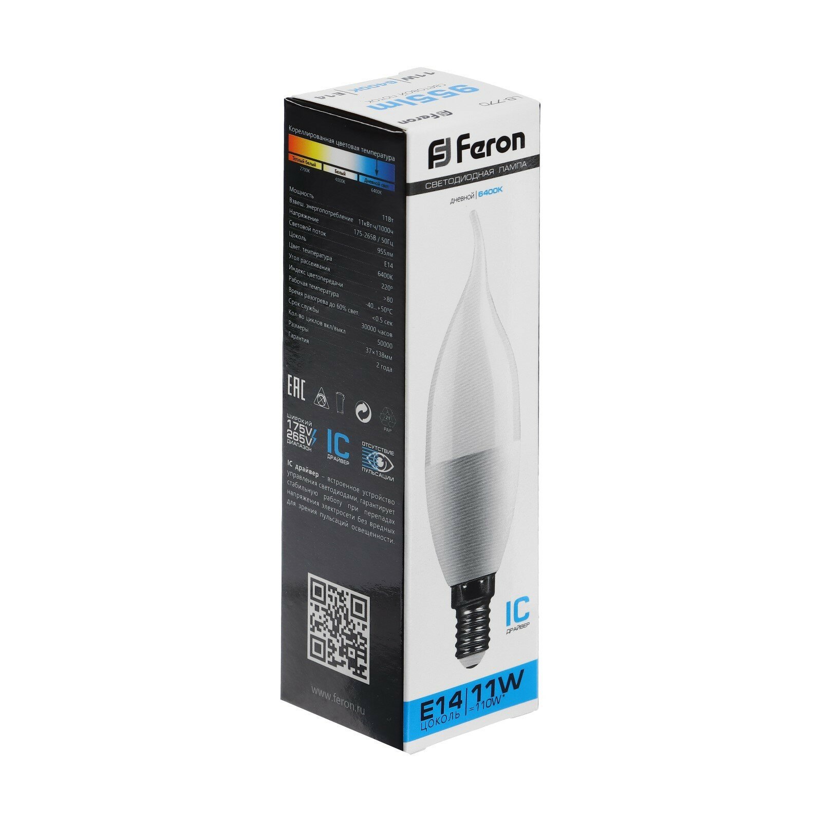 Feron свеча на ветру C37 E14 11W(955lm) 6400K 6K матовая 138x37 LB-770 25952 (арт. 694359)