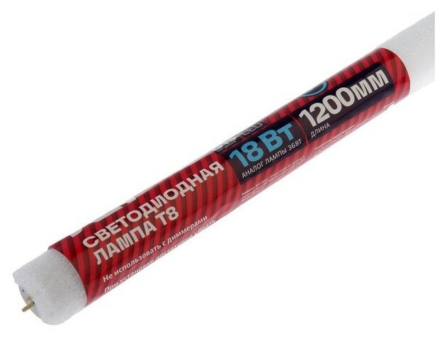 Лампа светодиодная LED, Т8, G13, 18 Вт, 6500 К, 1200 мм, холодный свет