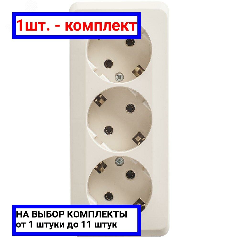 3шт. - Этюд Розетка тройная наружная с заземлением без шторок 16А 250B кремовый / Systeme Electric; арт. PA16-011K; оригинал / - комплект 3шт