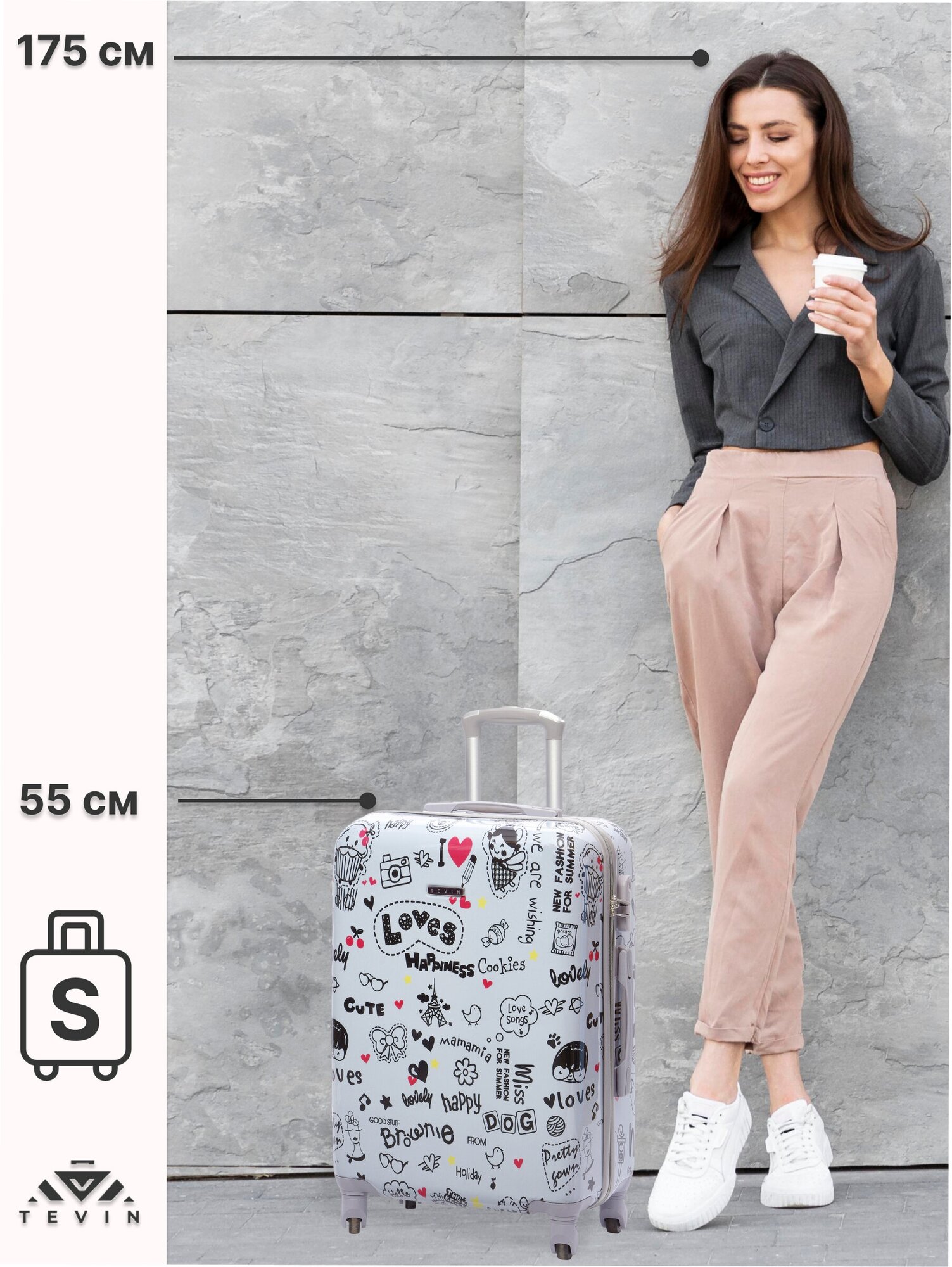 Чемодан TEVIN S+ с рисунком