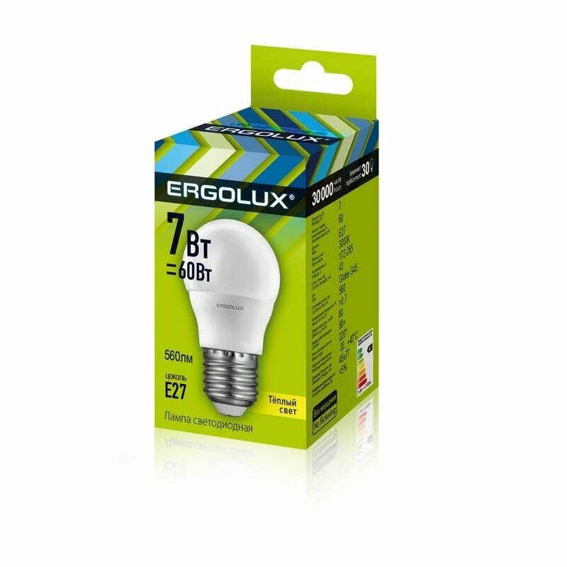 Ниже Вы можете прочитать отзывы на Лампочка светодиодная G45 Ergolux, 7Вт 220В, цоколь Е27, теплый свет 3000К, 1 шт., ознакомится с подробными характеристиками, посмотреть интересные обзоры и фотографии на Лампочка светодиодная G45 Ergolux, 7Вт 220В, цоколь Е27, теплый свет 3000К, 1 шт..