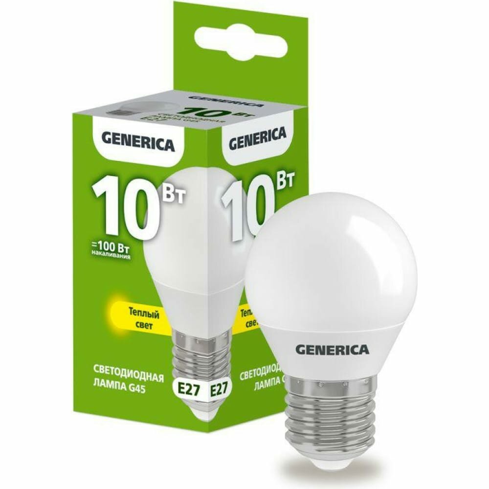 Лампа светодиодная G45 10Вт шар 3000К E27 230В GENERICA, IEK LL-G45-10-230-30-E27-G (10 шт.)