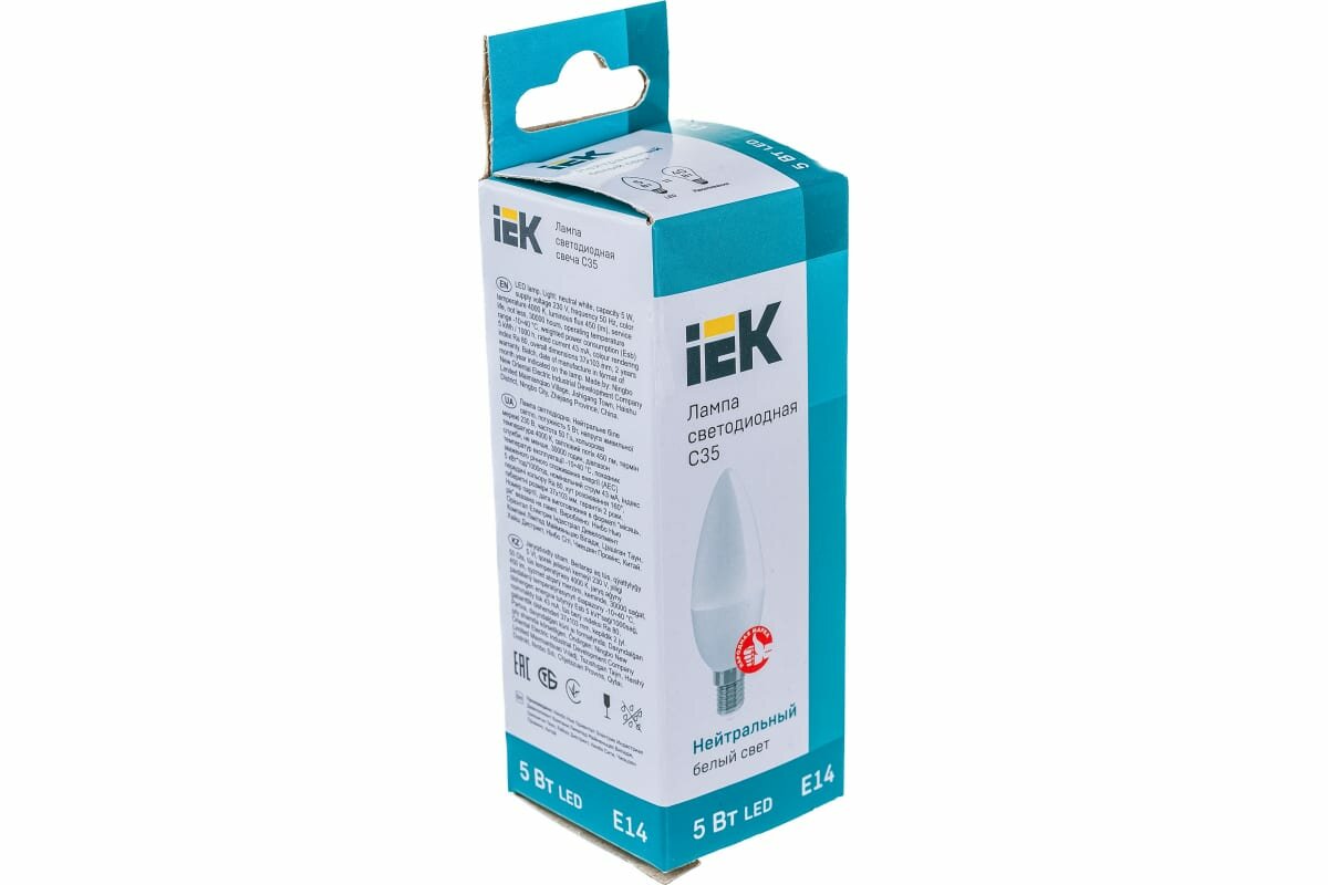 (5 шт.) Светодиодная лампочка IEK свеча C35 E14 5W(450lm) 4000K 4K 100x35 матов. ECO LLE-C35-5-230-40-E14 Нейтральный белый. Цоколь E14