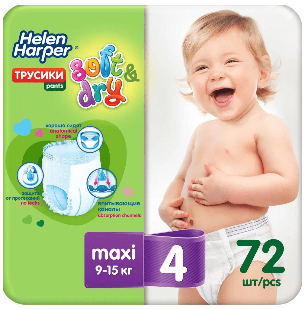 Трусики подгузники для малышей Helen Harper Soft & Dry размер 4, 9-15 кг, 72 шт интересное:
