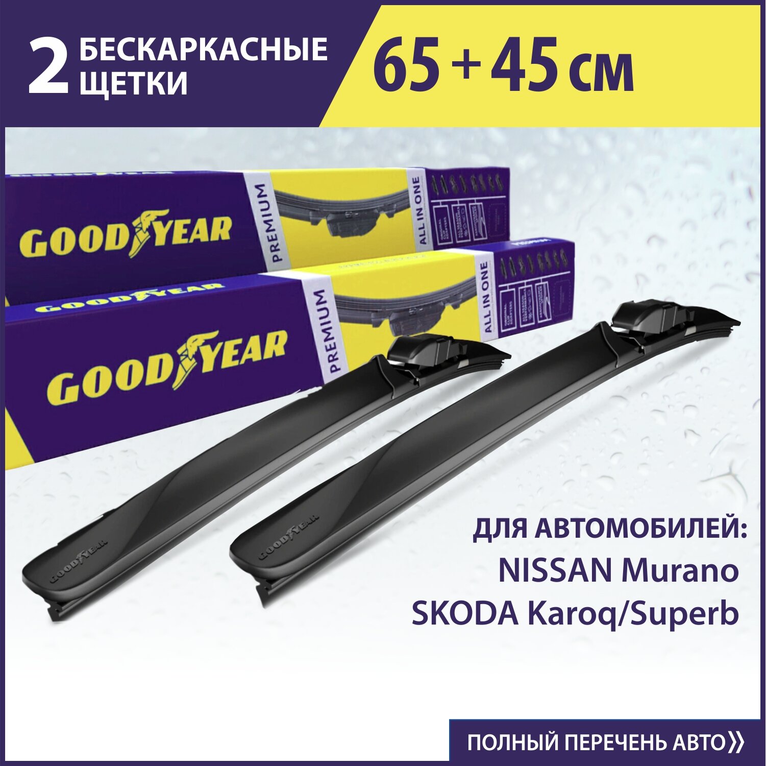 Купить 2 Щетки стеклоочистителя в комплекте (65+45 см), Дворники для автомобиля GOODYEAR для SKODA Karoq(17-нв)/Superb(15-нв), NISSAN Murano(16-нв)