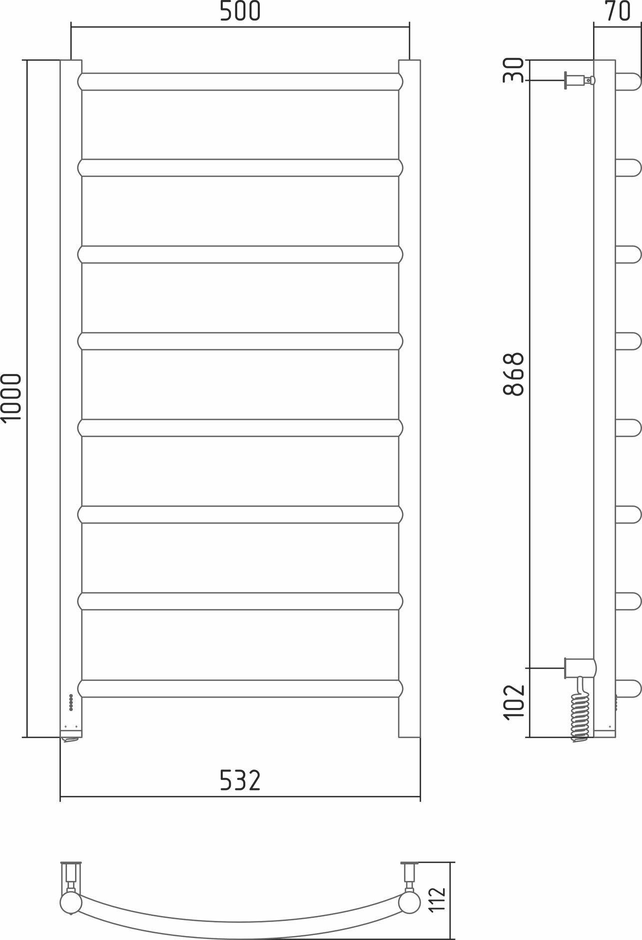 Полотенцесушитель Электрический Тругор Пэк сп 5 П 60х50 черный ВГП