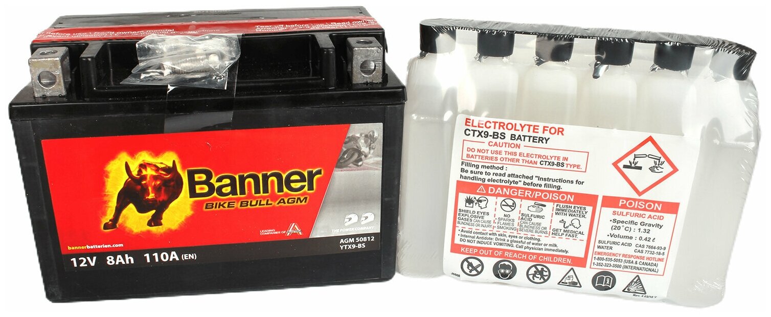 BANNER 6СТ8 YTX9-BS 508 012 008 Аккумулятор BANNER Bike Bull AGM 8А/ч интересное:
