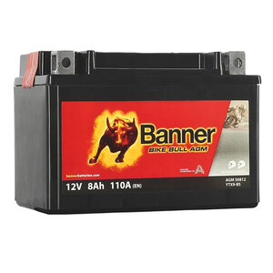 АКБ мото 8 А/часа BANNER BIKE Bull AGM-50812 12В Ток-110А 150/87/105мм Прямой YTX9-BS