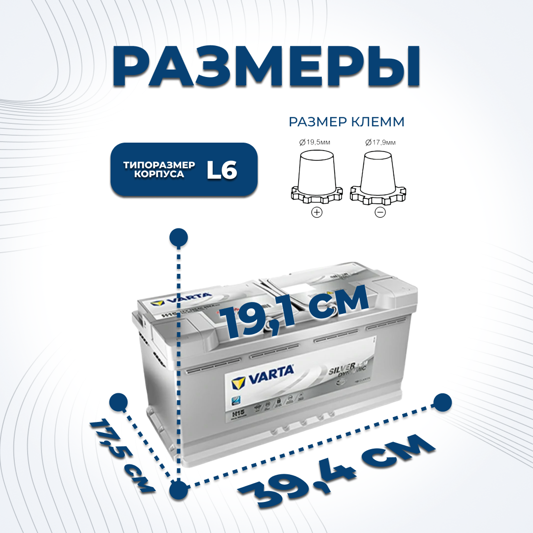 Аккумулятор автомобильный Varta Silver Dynamic AGM H15 6СТ-105 обр. 393x175x190