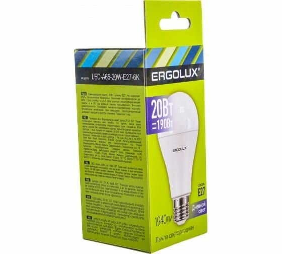 Электрическая светодиодная лампа Ergolux LED-A65-20W-E27-6K ЛОН