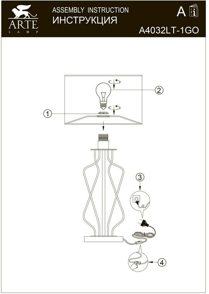 Настольные лампы и светильники Arte Lamp A4032LT-1GO