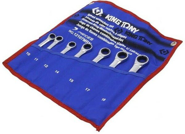 Набор комбинированных трещоточных ключей, 10-19 мм, чехол из теторона, 7 предметов KING TONY 12107MRN 12107MRN