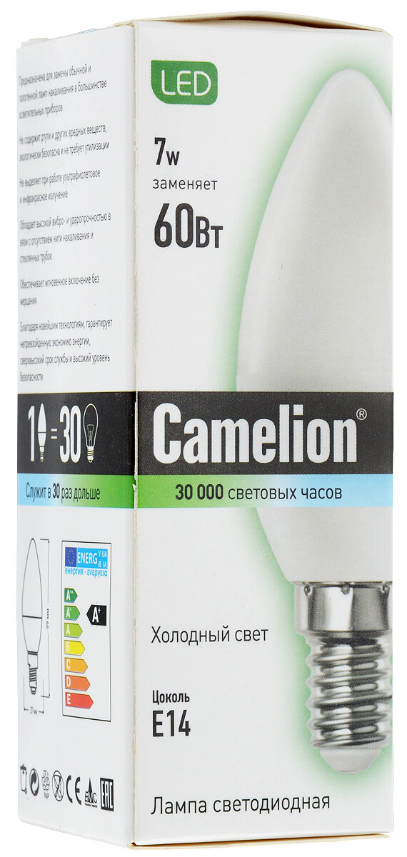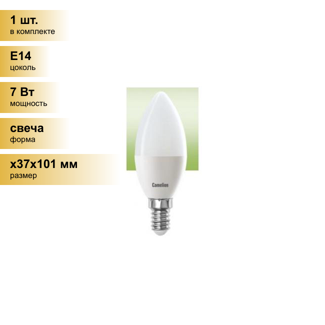 (Эл.лампа светодиодная 7Вт 220В), CAMELION LED7-C35/830/E14 (1 шт.)