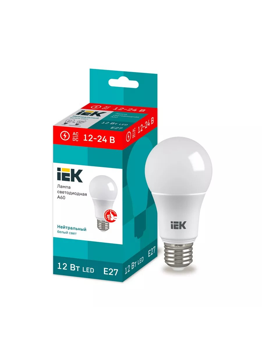 IEK Лампа светодиодная 12Вт A60 шар 12-24В 4000К нейтр. бел. E27 низковольтная IEK LLE-A60-12-12-24-40-E27