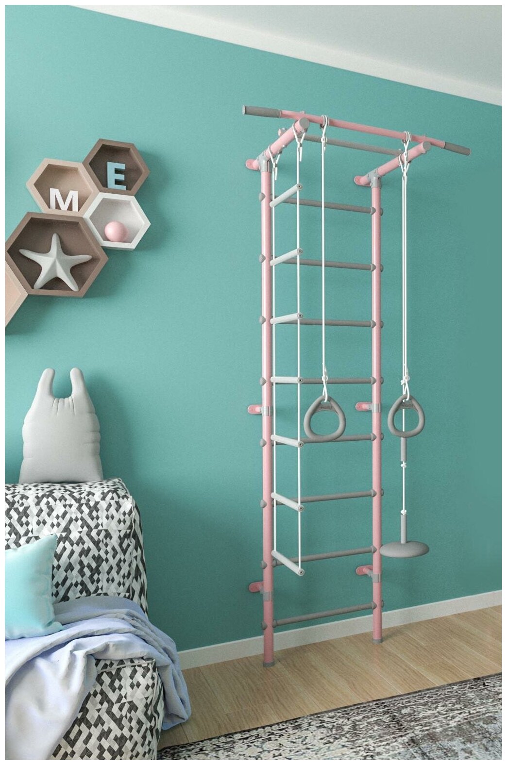 Шведская стенка Формула здоровья Pastel 1 (Розовый-Серый) - пристенный детский спортивный комплекс для дома