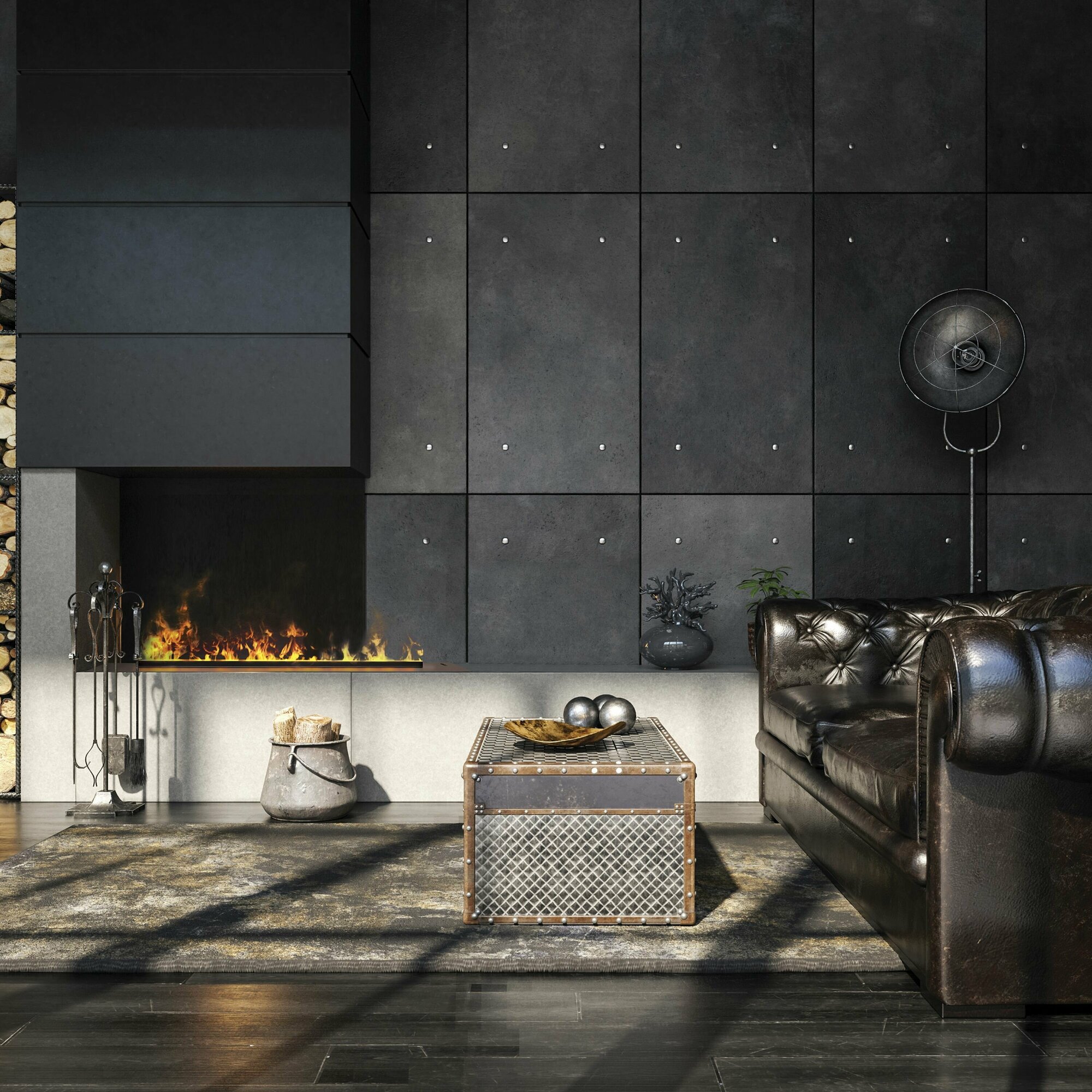 | Плюсы: | В наборе 2 верхних накладки (металлическая с линейным выходом "огня" и с имитацией дров)