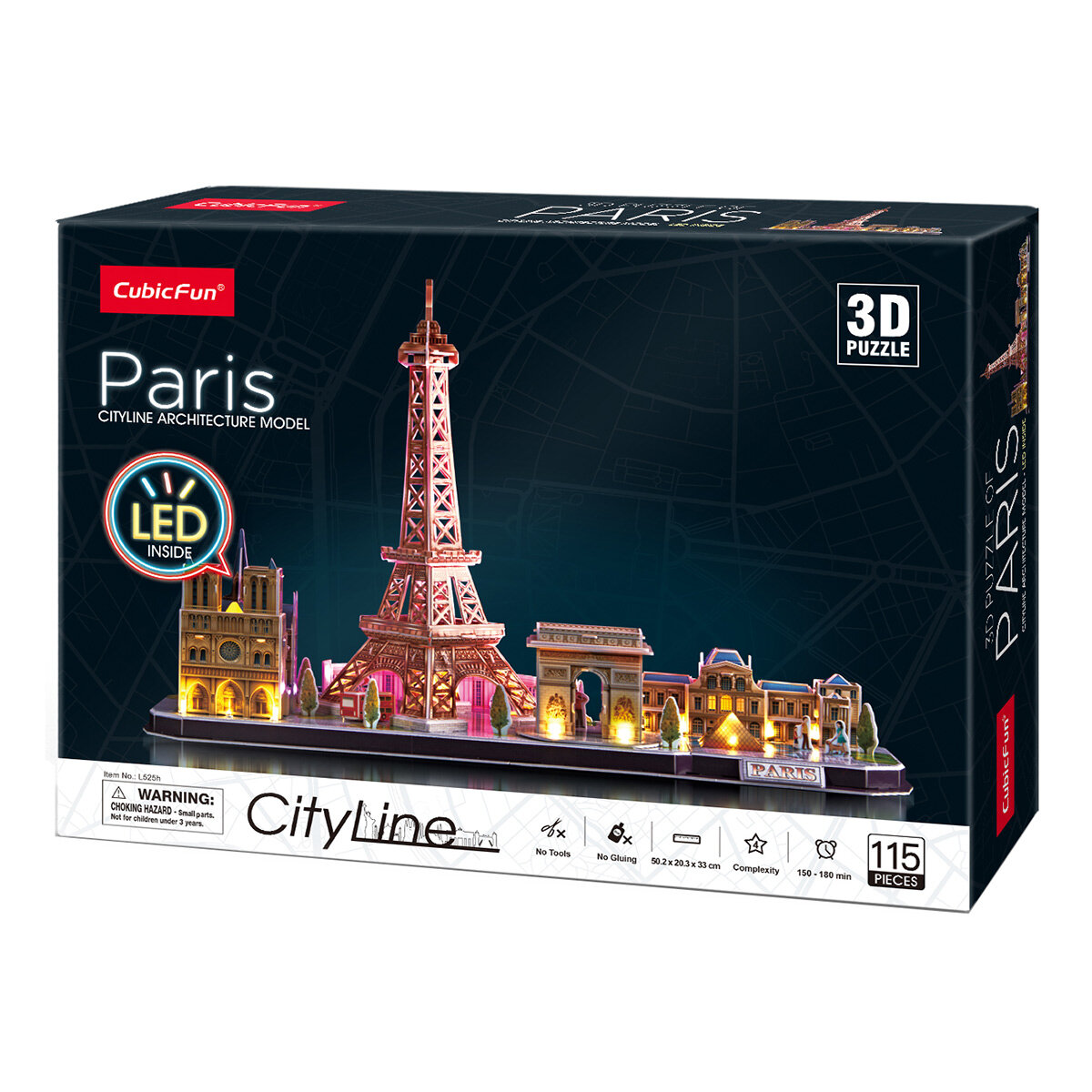 Купить Пазл 3D Cubicfun CityLine Париж, с LED-подсветкой, 115 деталей
