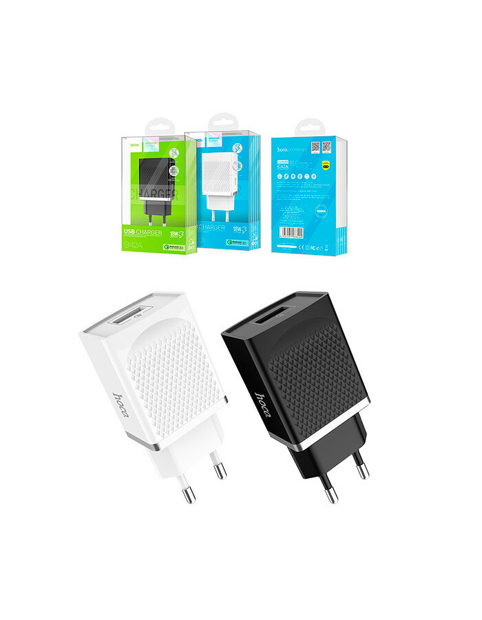 Сетевое зарядное устройство (СЗУ) Hoco C42A QC 3.0 (USB) 3 А, черный