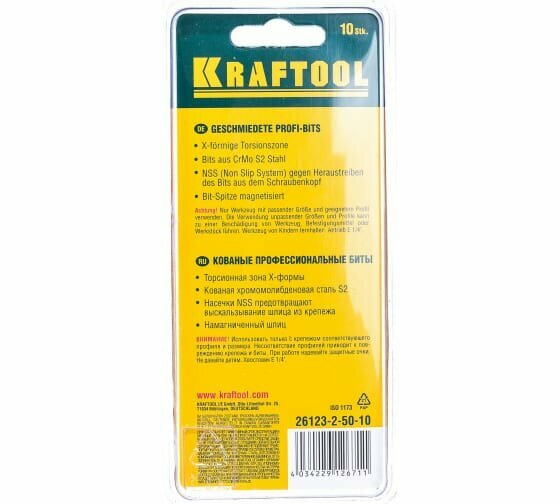 KRAFTOOL PZ2, 10шт, 50мм, "X-DRIVE" торсионные кованые профессиональные биты 26123-2-50-10