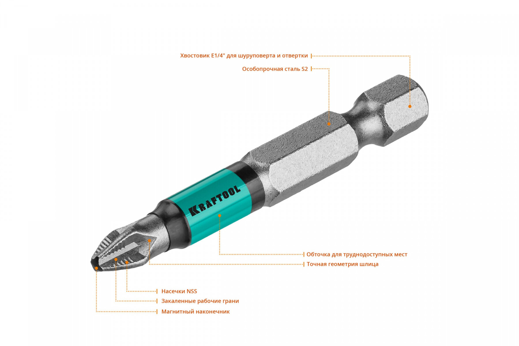 KRAFTOOL Биты PH2, 50 мм, тип хвостовика E 1/4", 10 шт в блистере KRAFTOOL
