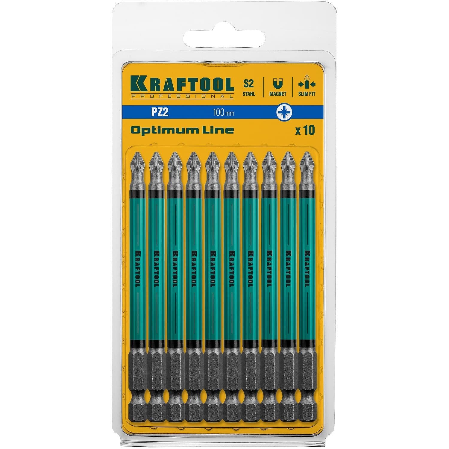 KRAFTOOL Optimum Line Биты, PZ2, тип хвостовика E 1/4", 100 мм, 10 шт в блистере, KRAFTOOL, ( 26124-2-100-10 )
