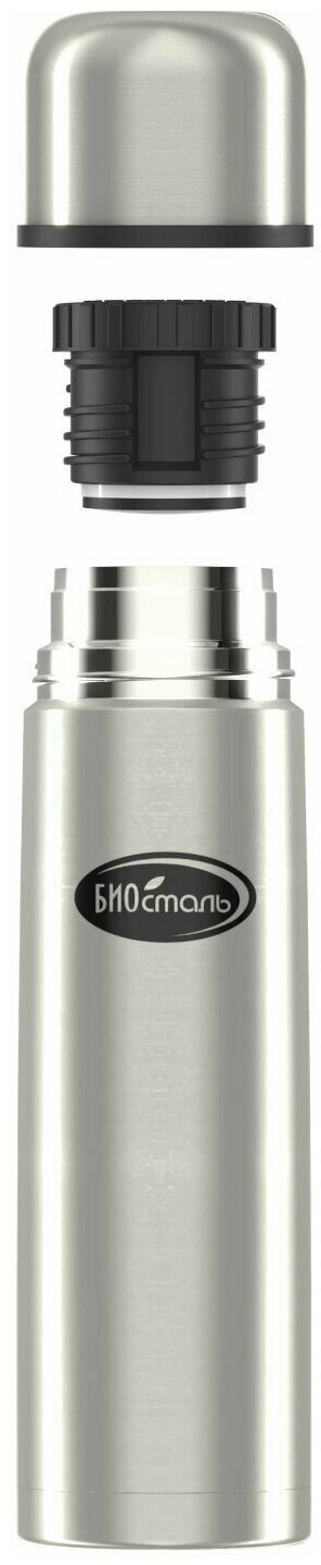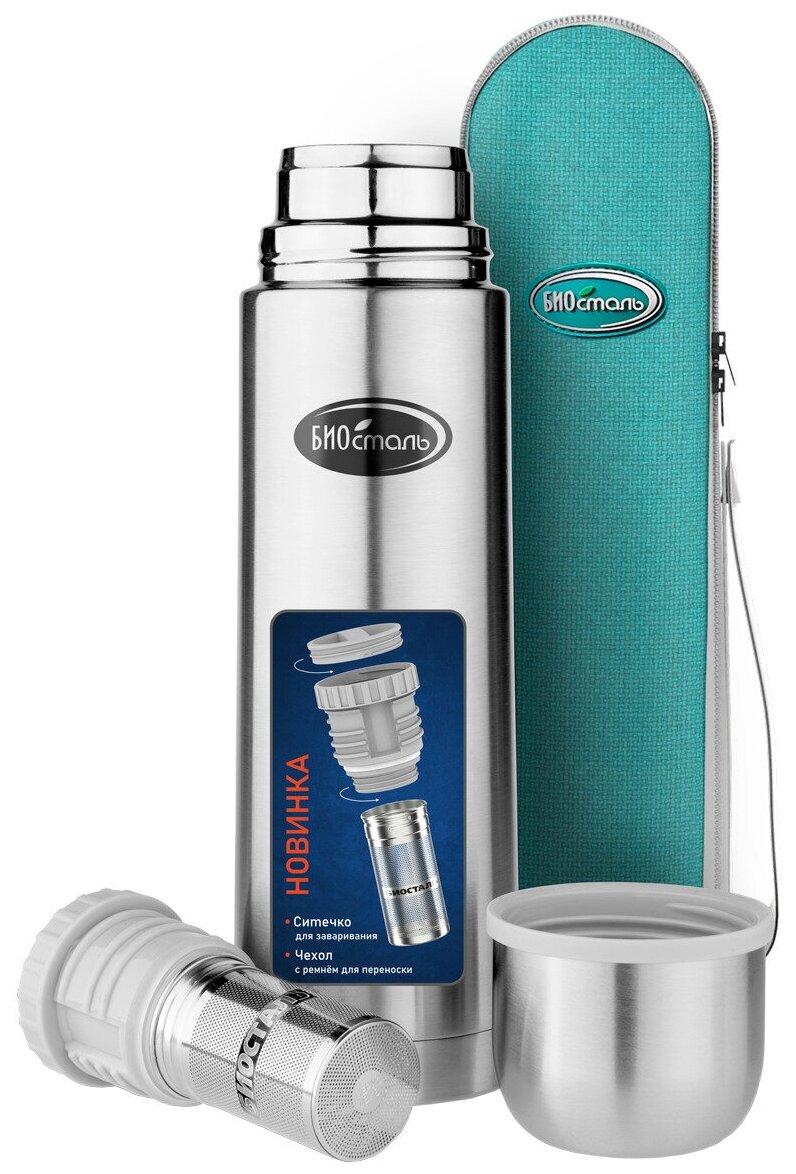 Термос классический Вакуумный с узкой горловиной, пробка-контейнер с ситичком, чехол Биосталь/Biost (1),NB-1000BZ