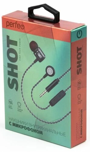 Perfeo наушники внутриканальные c микрофоном SHOT черные металлические [PF_C3199]