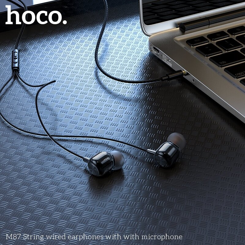 Наушники M87 String wired earphones, hoco, вакуумные с микрофоном, черные
