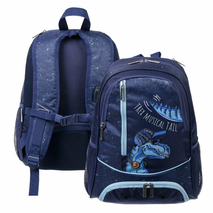 Рюкзак школьный 42 x 29 x 12 см, эргономичная спинка, отделение для ноутбука, Sreet "Мой друг Дино", синий