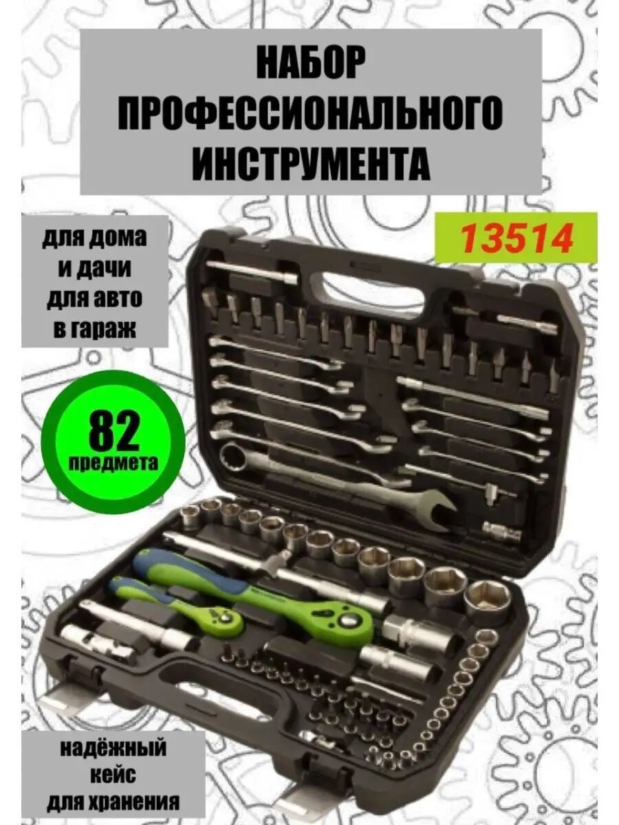 Набор инструментов, 1/2, 1/4, CrV, пластиковый кейс 82 предм.Сибртех СИБРТЕХ 13514