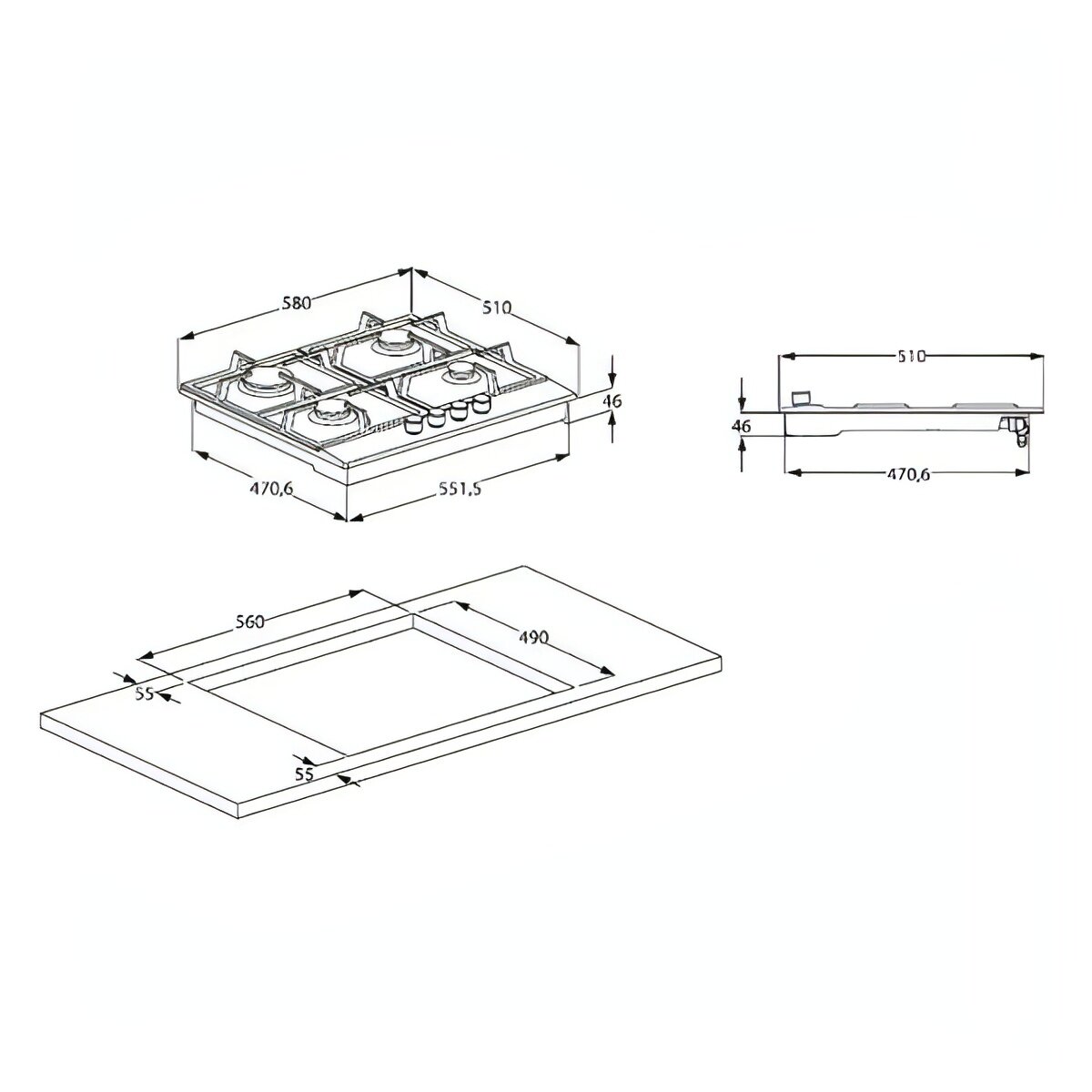 | Ширина для встраивания | 56 см |