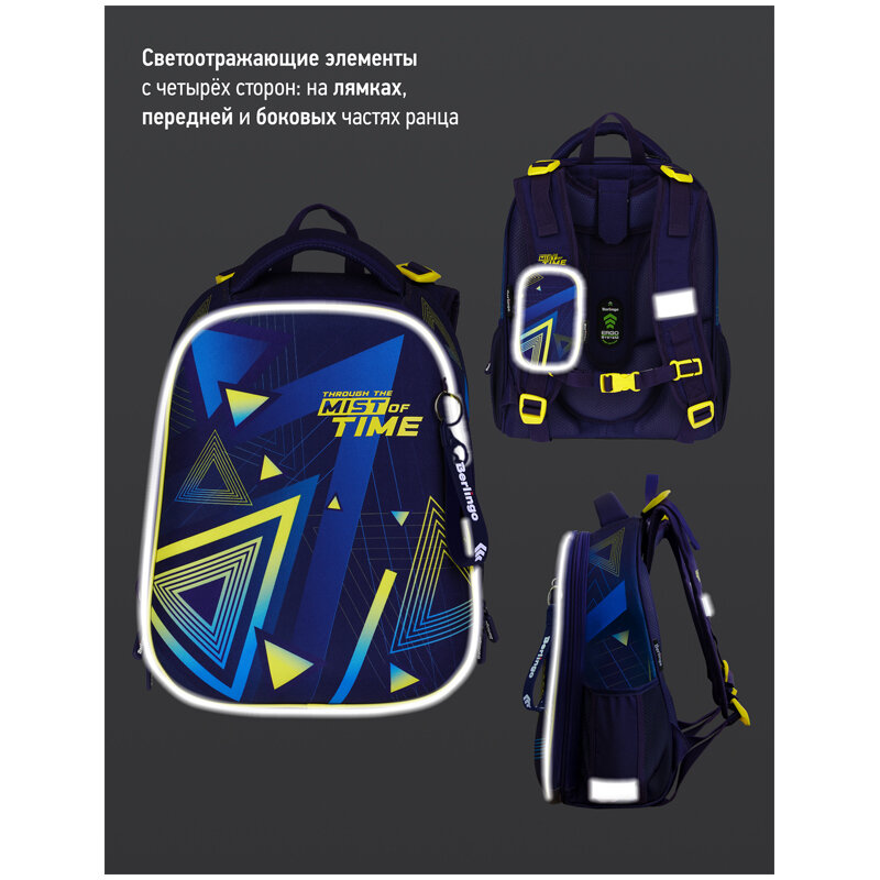 Купить Ранец ортопедический школьный Berlingo для мальчика, Expert Max Triangles 37х28х16 см, 2 отделения, дождевик (RU07158)