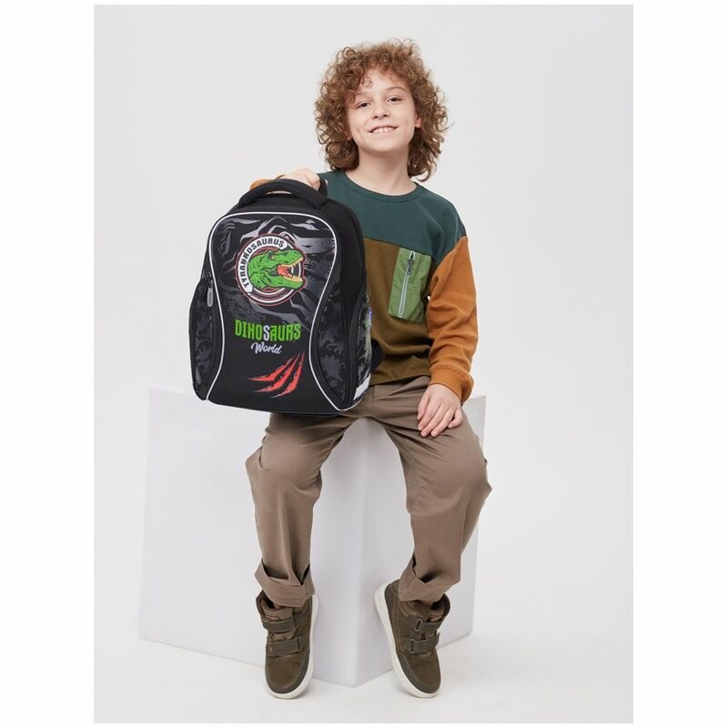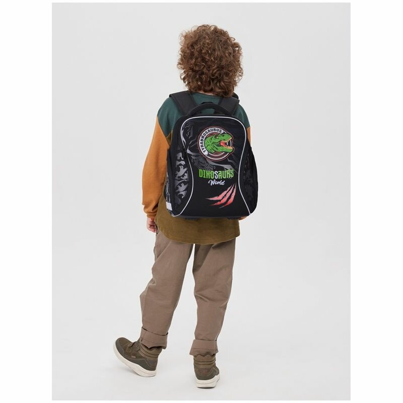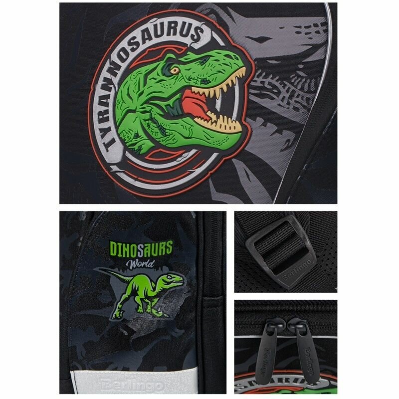 Berlingo Ранец Nova Dino world, черный/серый/зеленый