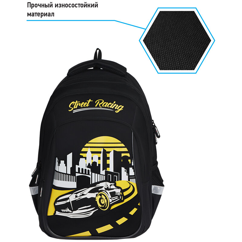 Рюкзак Berlingo Comfort "Street Racing", эргономичный, нейлон, текстиль, 3 отделения