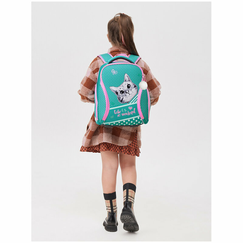 Ранец ортопедический школьный Berlingo для девочки, Nova, "Curious cat", 37х28х18 см, 2 отдела, 2 кармана (RU06205)