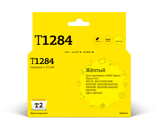 T2 Расходные материалы C13T12844010 Картридж IC-ET1284 для EPSON Stylus S22 SX125 SX130 SX420W Office BX305F желтый с чипом