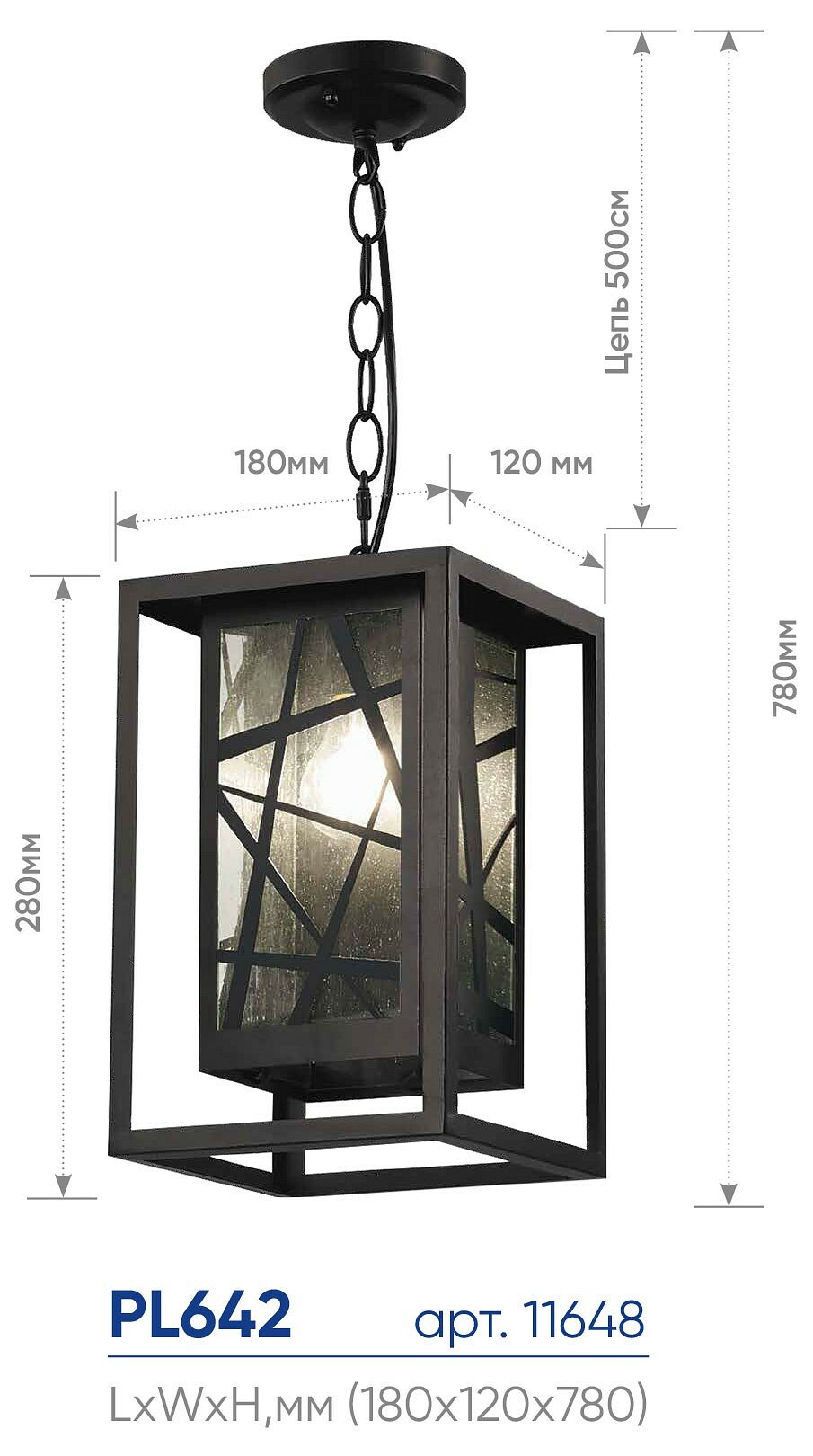 Светильник садово-парковый PL642 на цепочке 60W 230V E27, черный, FERON 11648 (1 шт.)