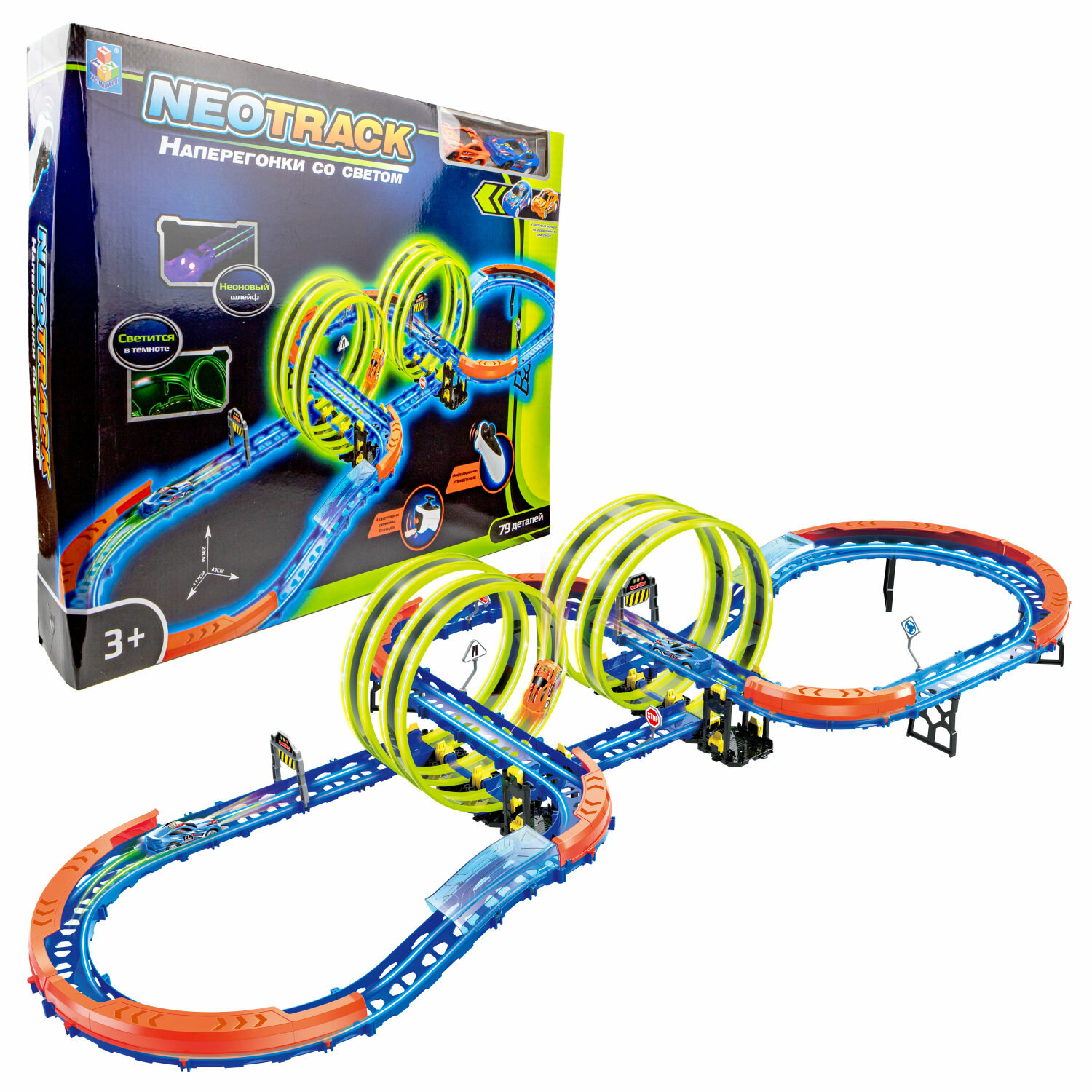 Автотрек 1TOY Т21046 Neotrack светящийся, 79 деталей