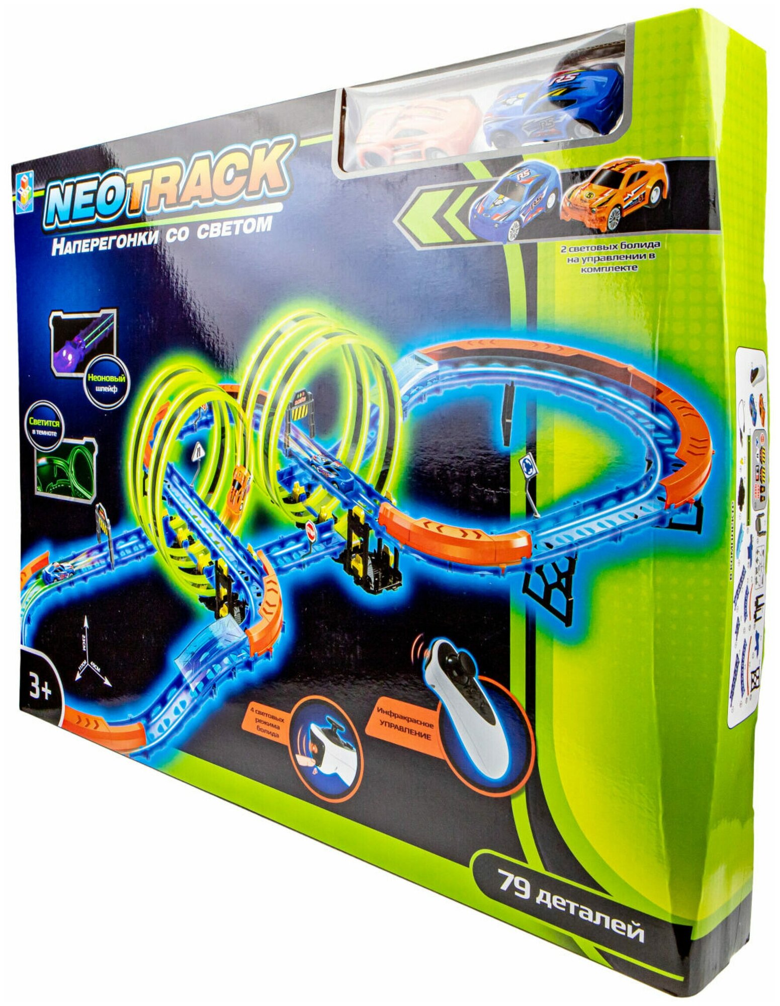 Купить Автотрек 1Toy Neotrack, 79 деталей, свет, ик управление, 2 машинки с акб (Т21046)