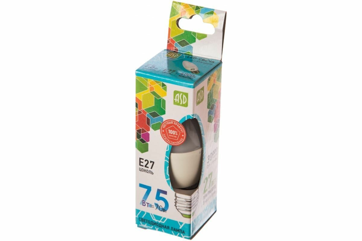 ASD Лампа светодиодная LED-СВЕЧА-standard 7.5Вт 230В Е27 4000К 675Лм 4690612003955
