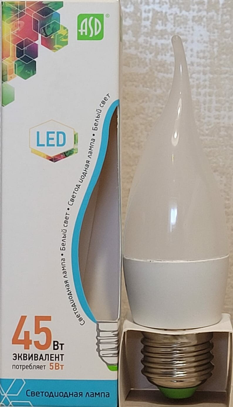 Лампа ASD led-свеча на ветру-standard 5Вт Е27 4000К 450Лм интересное:
