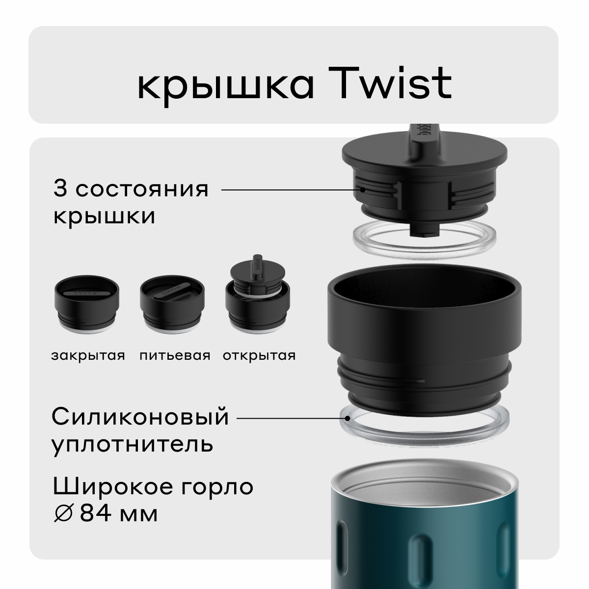 | Дополнительная информация | крышка Twist имеет три положения: 1. питьевая - прокрутите до щелчка, чтобы пить как из кружки; 2. открытая - сделайте два оборота, чтобы вытащить внутреннюю часть крышки; промойте Tumbler водой и залейте новый напиток; 3. закрытая - в таком положении температура напитка сохраняется максимально долго. Tumbler c закрытой крышкой на 100% герметичен. |